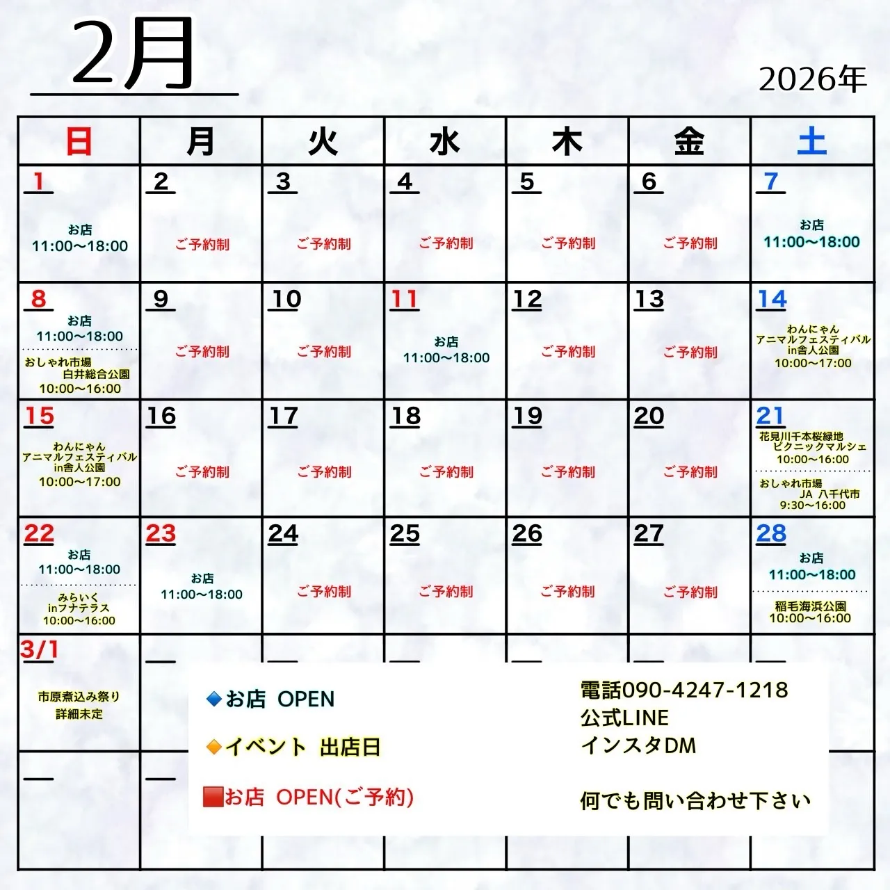 2月の営業スケジュールをお知らせします📷
