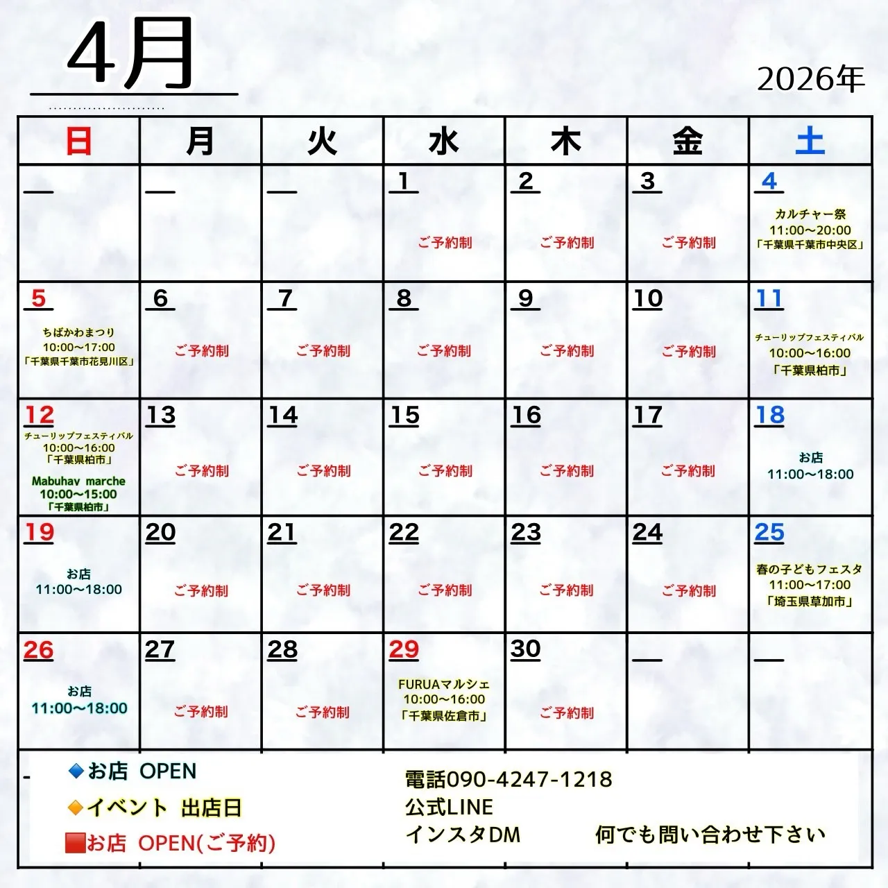 4月のイベントスケジュールです📅✨